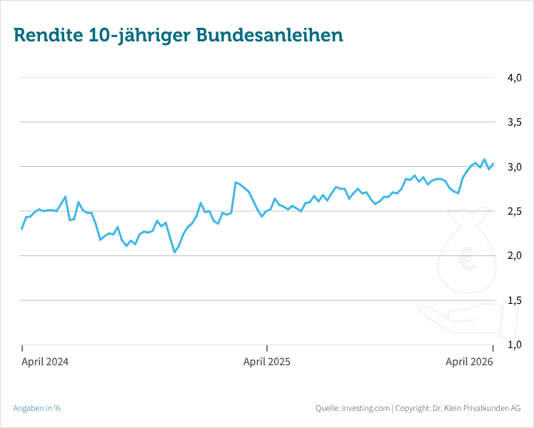 Die ungewisse Situation im Nahen Osten macht es auch der Europäischen Zentralbank nicht leicht. Fakt ist: Die Inflation ist deutlich gestiegen. So kletterte die Teuerungsrate im März laut Eurostat im Euro-Raum auf 2,6 Prozent, in Deutschland auf 2,8 Prozent und liegt damit nun wieder deutlich oberhalb der von der EZB anvisierten Zwei-Prozent-Marke. „Ginge es nur um die Inflation, müsste die Notenbank die Leitzinsen erhöhen, um die Teuerung zu bekämpfen. Doch es geht eben auch darum, die Konjunktur zu stärken – und da wären steigende Zinsen hinderlich“, erklärt Pfaffinger. „Die kommenden Wochen werden zeigen, ob der Preisschub dem zarten wirtschaftlichen Aufschwung der vergangenen Monate lediglich eine Delle verpasst oder ob die Lage neu bewertet werden muss.“ Die EZB wird die Gesamtsituation auf Basis der ihr vorliegenden Daten einschätzen und entsprechend handeln. Für ihre Sitzung am 30. April 2026 erwartet Pfaffinger jedoch keinen Zinsschritt. „Auch wenn wir aktuell höhere Inflationsraten sehen, über das genaue Ausmaß der Teuerung wird die Notenbank erst im Juni ausreichend Informationen haben – dann kann sie zielgerichtet agieren.“ Zwei Zinsschritte hat der Markt bis Jahresende eingepreist – im Juni und im September. Ob es dazu kommen wird, dürfte maßgeblich von der Entwicklung des Nahost-Konflikts abhängen.